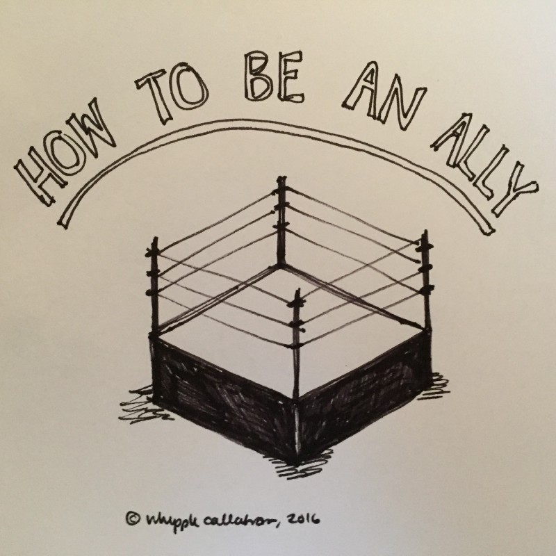 The most resonant metaphor of allyship is that of a WWE-style wrestling match. A supporter will sit on the sidelines and cheer. They’ll talk you up to their friends. They’ll put money on you even if the odds aren’t in your favor. They’ll bring a sign with your name on it. They’re wonderful cheerleaders.